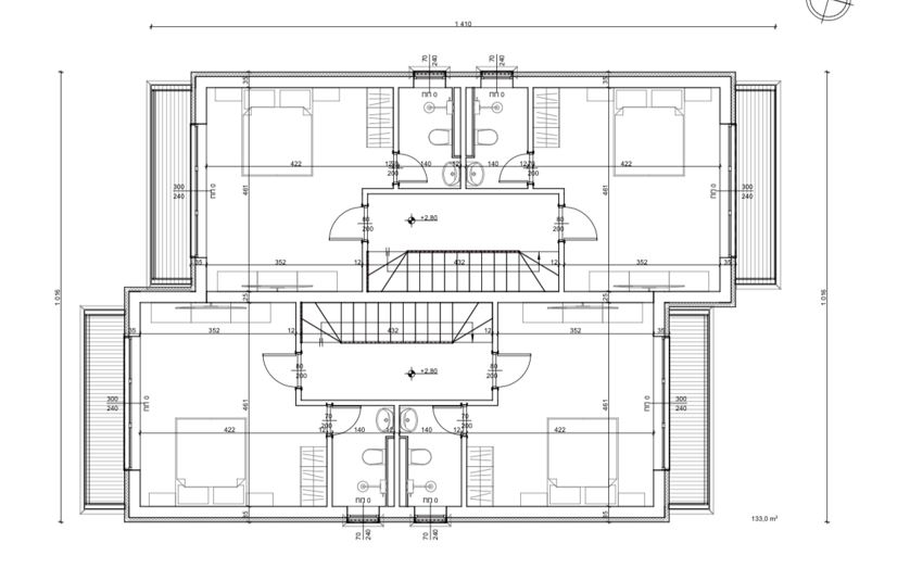 Domy se vyznačují moderní architekturou, funkčním uspořádáním a vysoce kvalitními moderními materiály a systémy. Celková zastavěná plocha každého domu je 133 m², rozložená na dvou podlažích, bez verand. K obytné ploše patří veranda 10 m² s přímým vstupem z obývacího pokoje, která poskytuje ideální prostor pro odpočinek, rodinné večeře nebo setkání s přáteli.