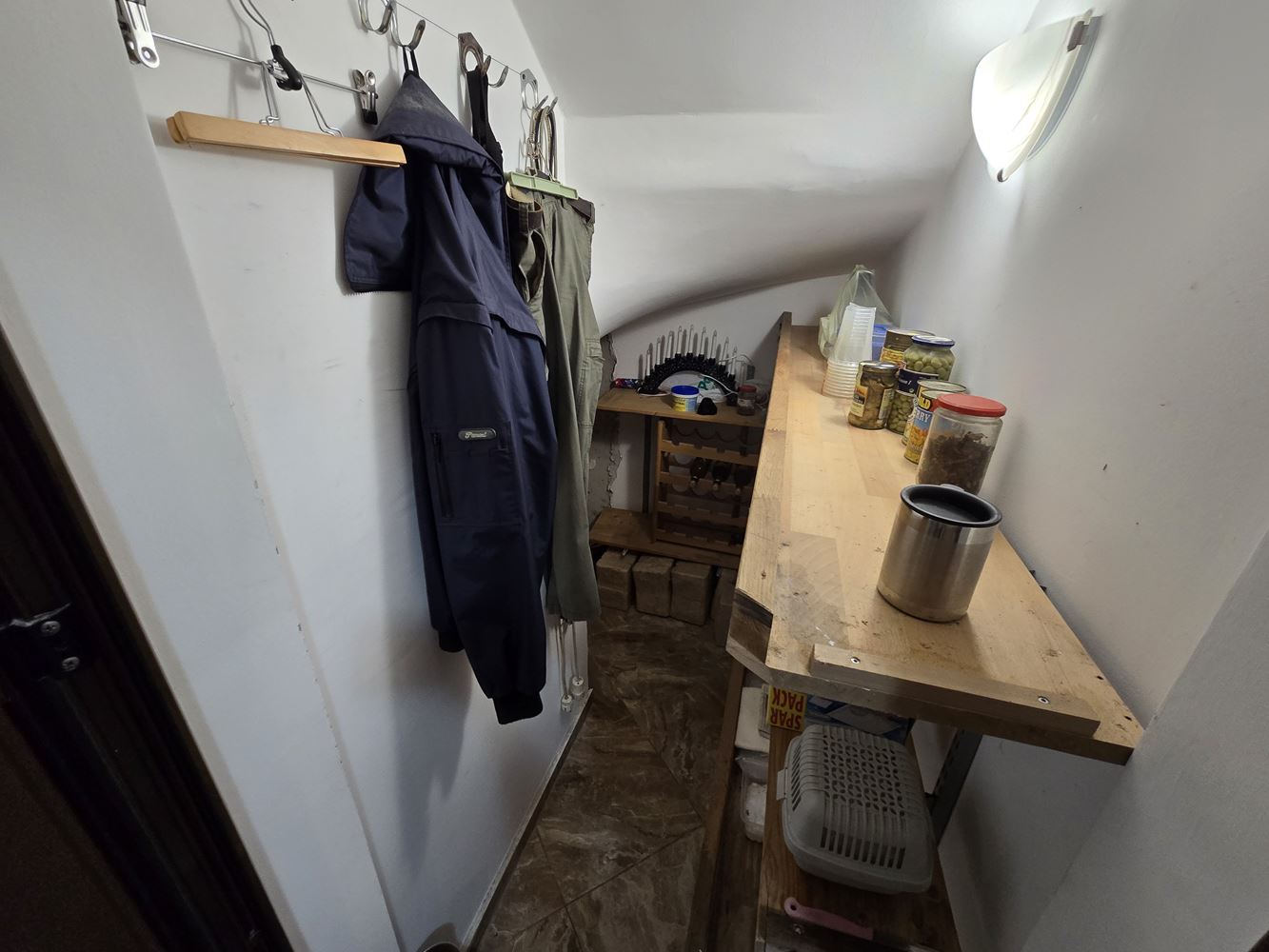 Dispozice tohoto domu zahrnuje suterén - podzemní podlaží se skladem, dílnou a saunou. V prvním patře se nachází prostorný obývací pokoj s kuchyní s krbem na tuhá paliva, koupelna s toaletou a veranda. Druhé patro se skládá ze dvou ložnic, koupelny s toaletou a terasy s panoramatickým výhledem na moře. Dům je kompletně zařízený a vybavený nábytkem a spotřebiči, což zajišťuje vysokou úroveň komfortu a pohodlí. Díky topnému systému je dům obyvatelný po celý rok a poskytuje teplo a pohodlí i v chladných měsících.