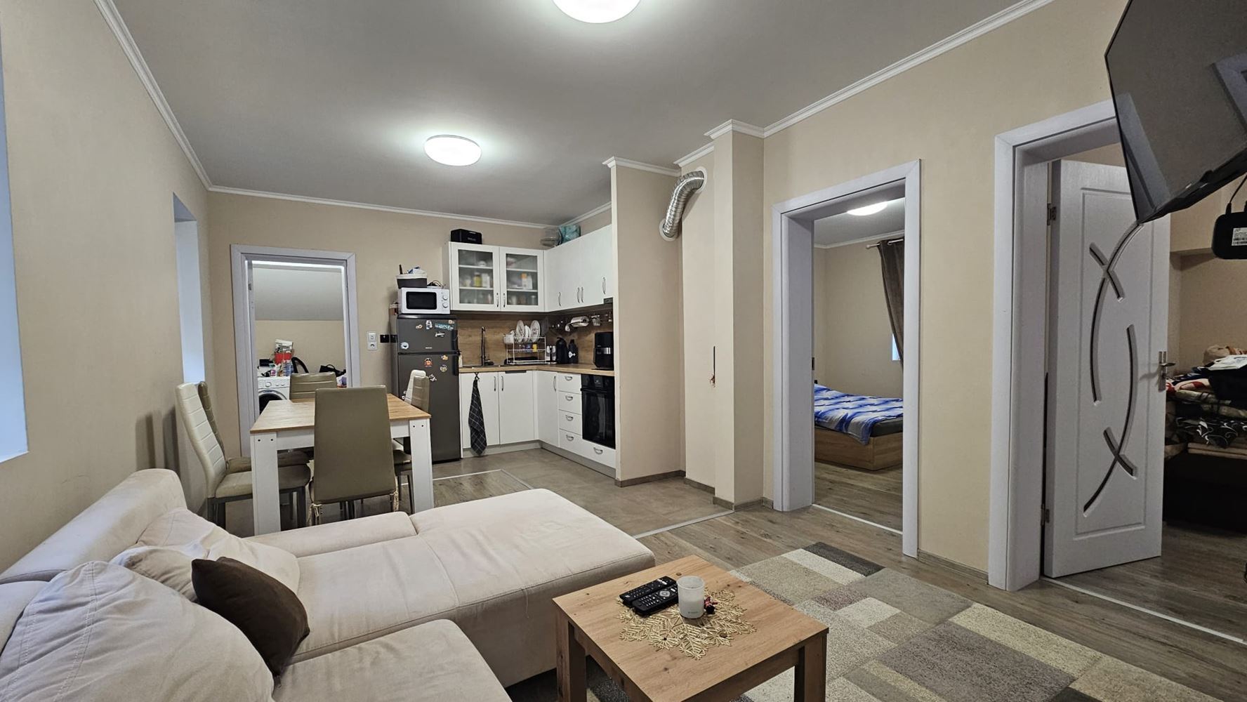 Dům je kompletně zrekonstruován a nabízí moderní vybavení a zařízení, připravené k okamžitému nastěhování. Dispozice zahrnuje chodbu, prostorný obývací pokoj s kuchyní, tři pohodlné ložnice, koupelnu se sprchou a sklad, což zajišťuje funkčnost a komfort pro celou rodinu. Každý detail je navržen tak, aby poskytoval maximální pohodlí a útulnost.